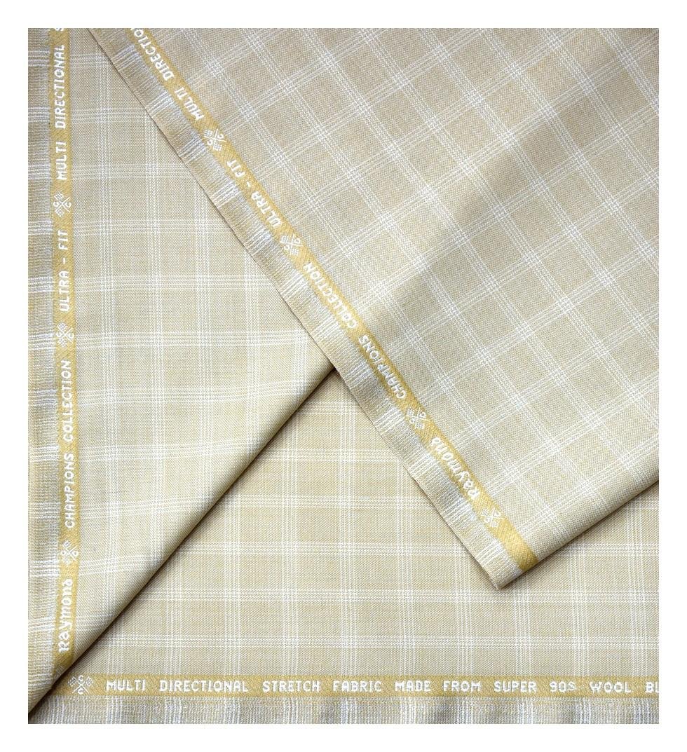Raymond Champions Collection made from Super 90's wool with multi directional stretch fabric for ultra fit Beige colour checkered pattern unstitched suit fabric of 3.5 Mts / VV2688