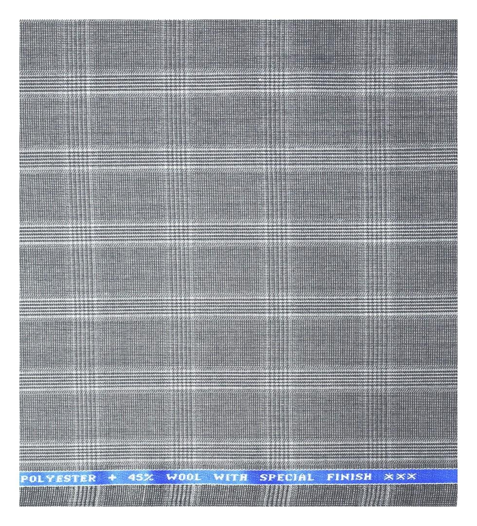 Raymond "Trendz Star" collection blend with 45% Australian merino wool, Special finish care Grey colour Checkered pattern unstitched trouser fabric of 1.25 Mts / VV2701