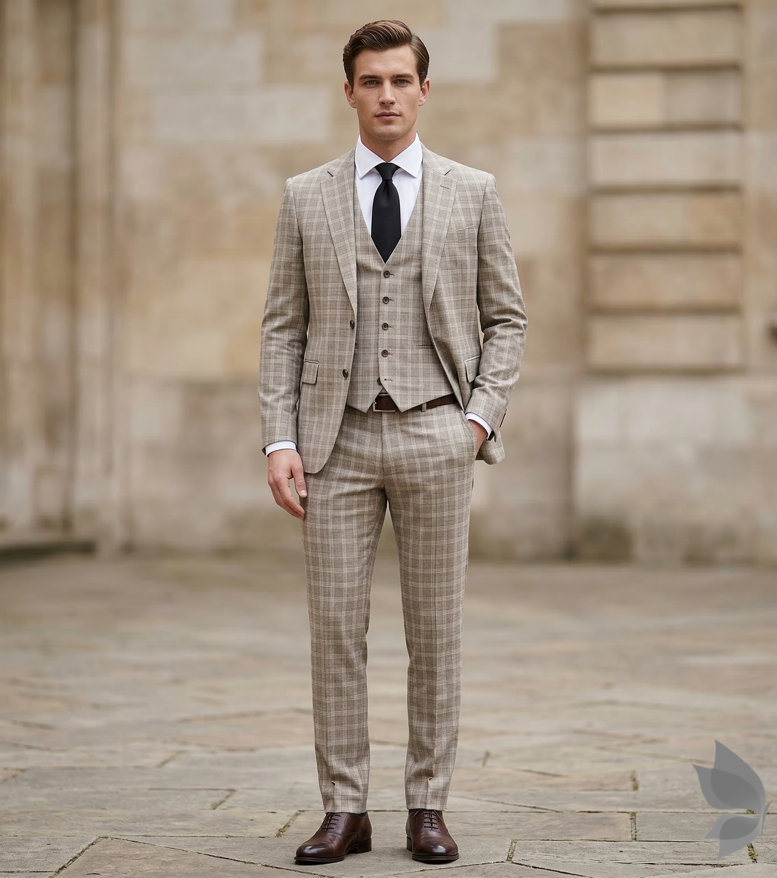 Raymond Champions Collection made from Super 90's Australian merino wool with multi directional stretch fabric for ultra fit Green (Sage) colour checkered pattern unstitched suit fabric of 3.5 Mts / VV2692