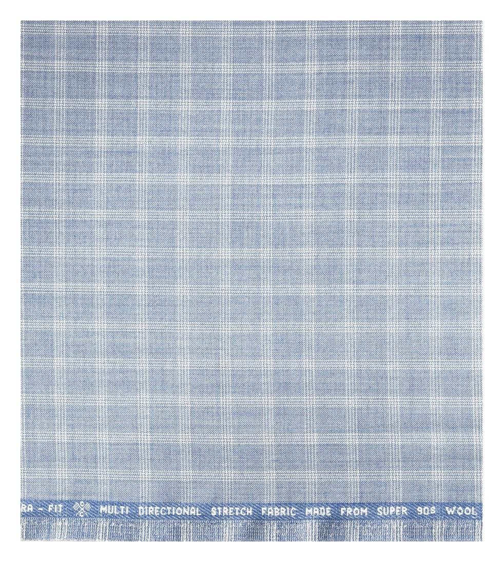 Raymond Champions Collection made from Super 90's wool with multi directional stretch fabric for ultra fit Blue colour checkered pattern unstitched suit fabric of 3.5 Mts / VV2690